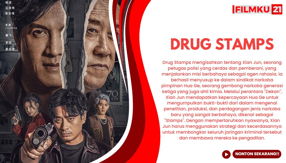 FILMKU21 aksi-kriminal yang intens, Drug Stamps, menyoroti perjuangan seorang petugas polisi pemberani bernama Xian Jun (diperankan oleh Long Chen), yang dengan segala kecerdasan dan keberaniannya, harus menghadapi dunia gelap peredaran narkoba. Di sisi lain, tokoh sentral dalam dunia kriminal ini adalah Hua Ge (diperankan oleh Ray Lui), seorang gembong narkoba generasi ketiga yang juga merupakan ahli kimia berbakat, serta “Dekan” (diperankan oleh Eric Tsang), gembong narkoba generasi kedua yang menjadi kunci akses bagi Xian Jun. Interaksi dan konflik antara ketiga karakter utama ini menjadi motor utama dari alur cerita yang sarat ketegangan.