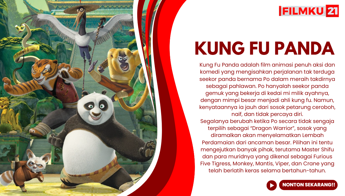 Segera kunjungi FILMKU21 untuk streaming film Terbaik tanpa repot. Di FILMKU21, kami menyediakan koleksi film aksi terlengkap dengan kualitas super jernih. Jangan biarkan akhir pekan Anda membosankan jadilah saksi perjuangan Po hanya di platform streaming kesayangan kita semua!