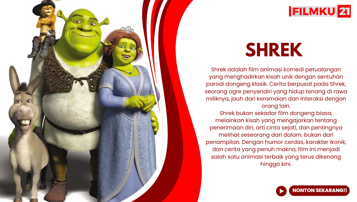 Segera kunjungi FILMKU21 untuk streaming film Terbaik tanpa repot. Di FILMKU21, kami menyediakan koleksi film aksi terlengkap dengan kualitas super jernih. Jangan biarkan akhir pekan Anda membosankan jadilah saksi petualangan Ogre hanya di platform streaming kesayangan kita semua!