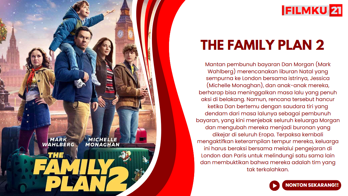 Tunggu apa lagi? Saksikan aksi konyol, hangat, dan eksplosif dari Dan Morgan dan keluarganya dalam The Family Plan 2! Segera tonton dan rasakan sensasi liburan yang penuh bahaya hanya di FILMKU21!